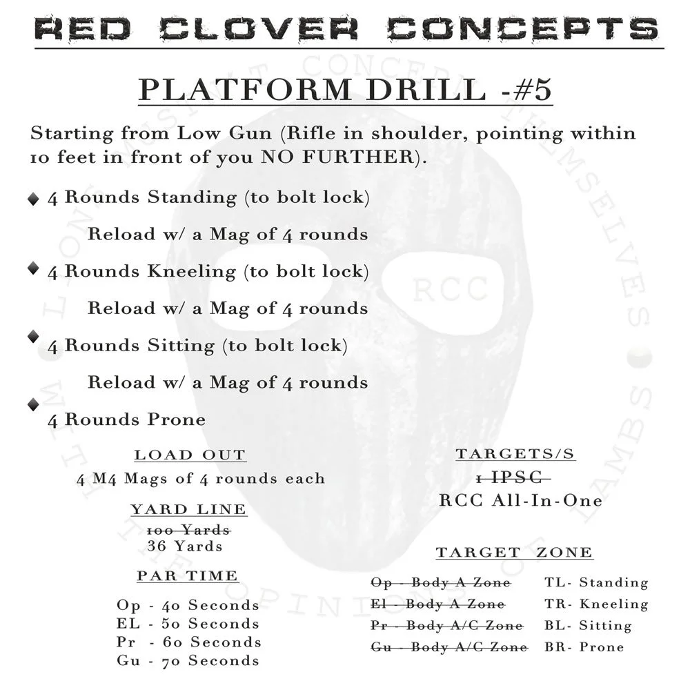 PLATFORM DRILLS: Designed and utilized downrange, these drills are meant to illicit a quick transition between various platforms with the shooter utilizing weapons manipulations at various points. Emphasizing the need for proper gear set up allowing for a smooth transition through the shooting with each platform in mind.